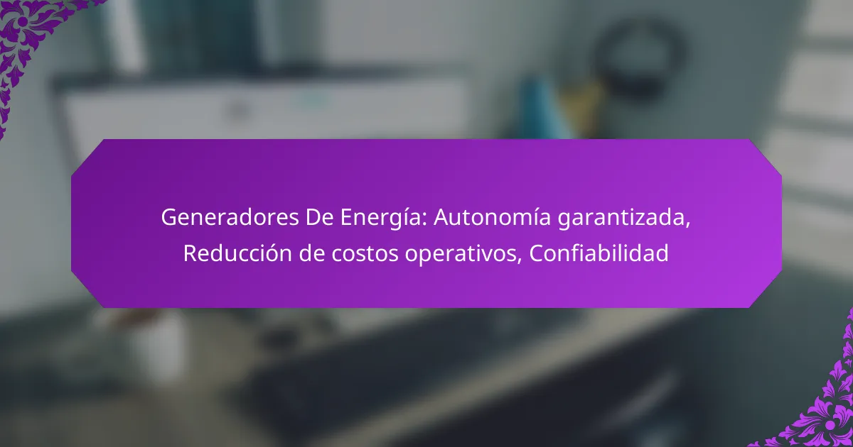 Los generadores de energía aseguran la autonomía al proporcionar una fuente de energía independiente y continua, lo que permite operar sin depender de la red eléctrica. Esto es especialmente crucial en situaciones donde el suministro eléctrico es inestable o inexistente.